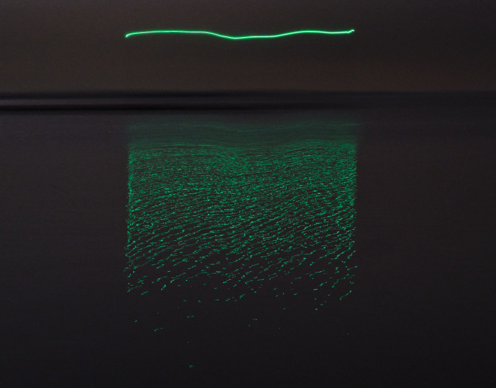 Het beeld vanaf het water staat centraal binnen deze periode van mijn werk, vanaf een platform, een zeilboot, observeer ik mijn omgeving en maak ik beelden die bepaald worden door het weer, wind, stroom en beweging. ‘Landverkenning’ is een opname gemaakt vanaf het ankergebied voor de kust van Scheveningen. Moon#2 is de refectie in het water van de volle maan vanaf een bewegend schip.